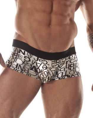 Серебристые трусы-хипсы с черными буквами