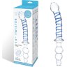 Длина: 24 см. Этот гладкий двухсторонний фаллоимитатор изготовлен из качественного, прочного, приятного для тела стекла. С одной своей стороны он имеет вагинальный фаллос, немного искривленный для воздействия на важные интимные точки, с голубой спиралью по всему стволу и крупной головкой. А на другом конце вы найдете анальную пробку-елочку, с удлиненной ножкой и тремя крупными бусинами. Плоское ограничительное основание в центре игрушки, диаметром 4,5 см, оно расположено так, чтобы фаллоимитатор не вставлялся слишком глубоко. Это отличная игрушка как для новичков, так и для опытных пользователей. Она сделана из прочного стекла, поэтому фаллос твердый, гладкий и легко чистится любым мылом или средством для очистки интимных игрушек. Длина фаллической части - 14,5 см, диаметр - 3,5 см. Длина ёлочки - 9 см, диаметр - 3,5 см. Страна: Китай. Материал: стекло.