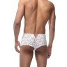Белые мужские кружевные трусы. Сделаны из эластичной ткани, поэтому отлично подходят на любой тип фигуры. Яркая расцветка и украшение-шнуровка на ягодицах легко смогут украсить ваше тело. Страна: Турция. Материал: 85% полиамид, 15% эластан.