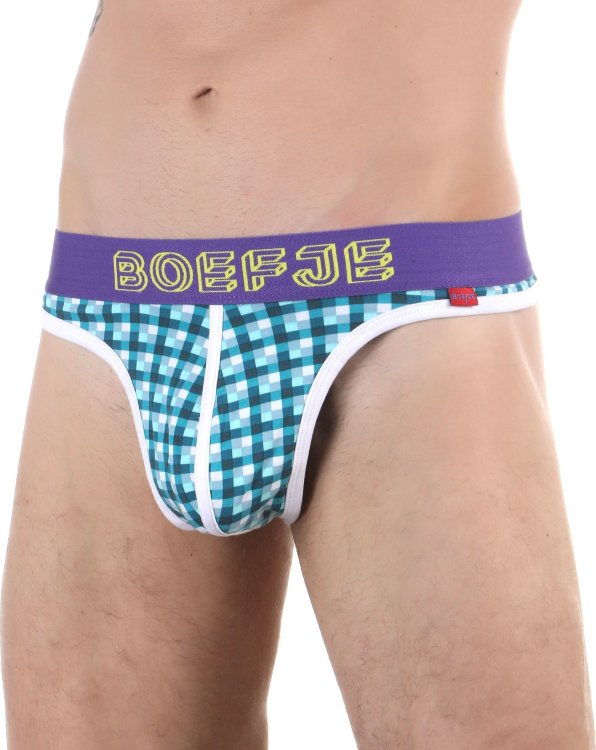 Бирюзовые клетчатые трусы-тонги с брендированным поясом