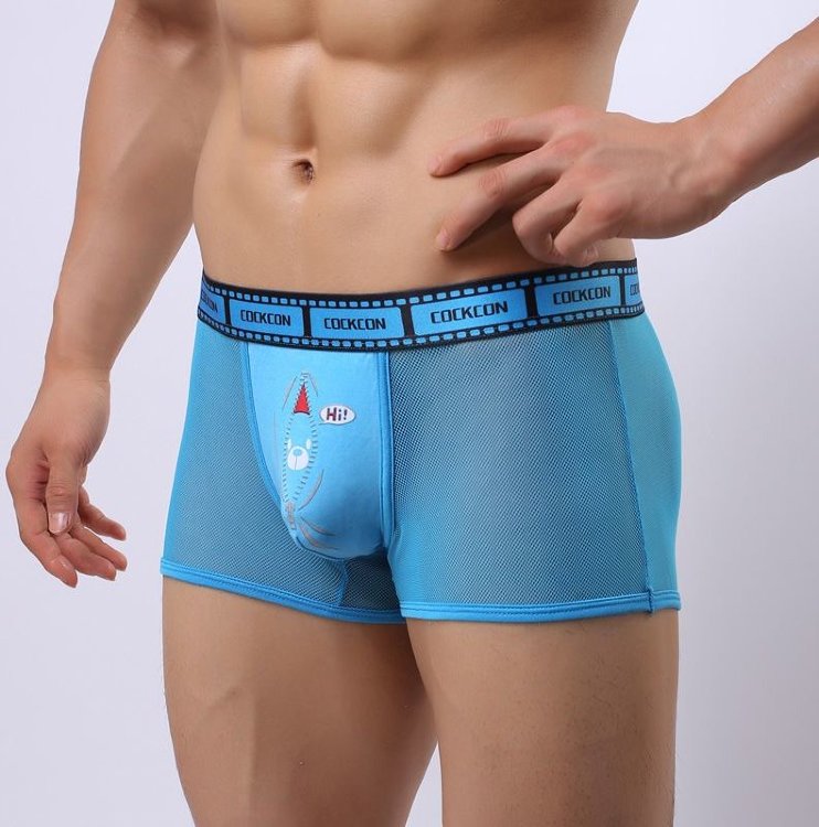 Сетчатые трусы-боксеры Cockcon Trunks с принтом на гульфике. Страна: Китай. Материал: 80% полиамид, 20% эластан.