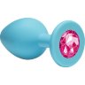 Малая голубая анальная пробка Emotions Cutie Small с розовым кристаллом - 7,5 см.