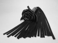 Чёрная плеть Ракета с рукоятью из латекса и хвостами из кожи - 65 см.