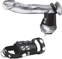 Разделитель мошонки из качественный искусственной кожи на клепках. Данный аксессуар крепится на...Код товара TMBW30905YVY Цвет черный Доставка 2 Упаковка блистер Материал искусственная кожа Страна США -